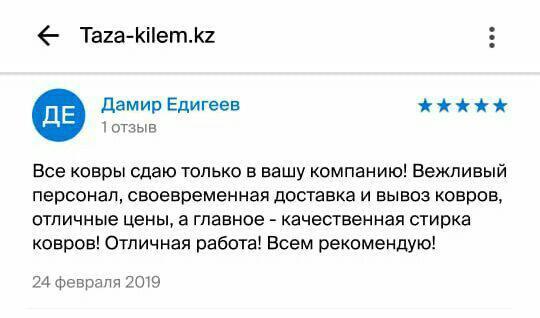 Все ковры сдаю только в вашу компанию! Вежливый персонал, своевременная доставка и вывоз ковров, отличные цены, а главное - качественная стирка ковров! Отличная работа! Всем рекомендую!